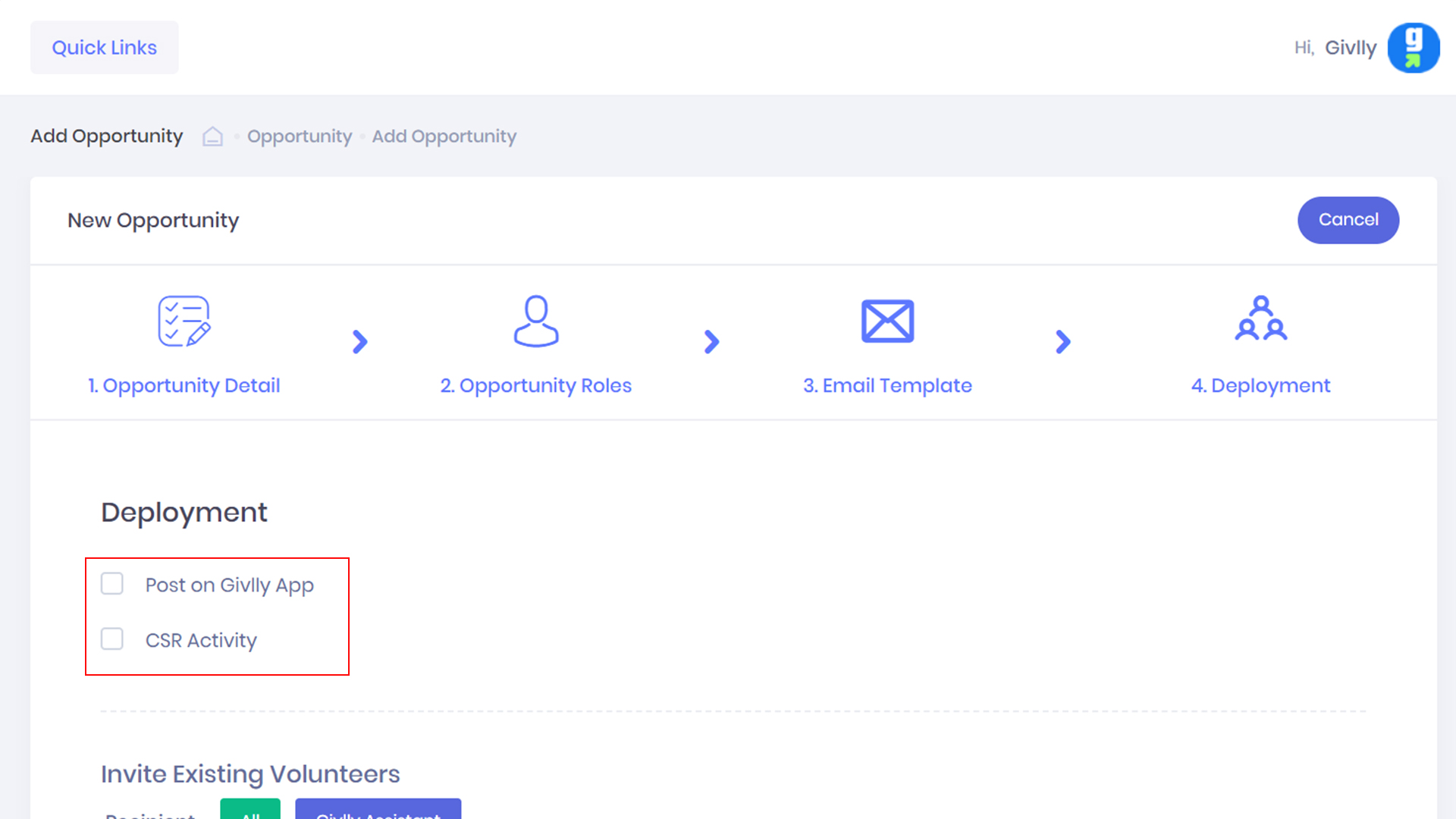 Step 4 of 4 - Deploying Your Volunteering Opportunity