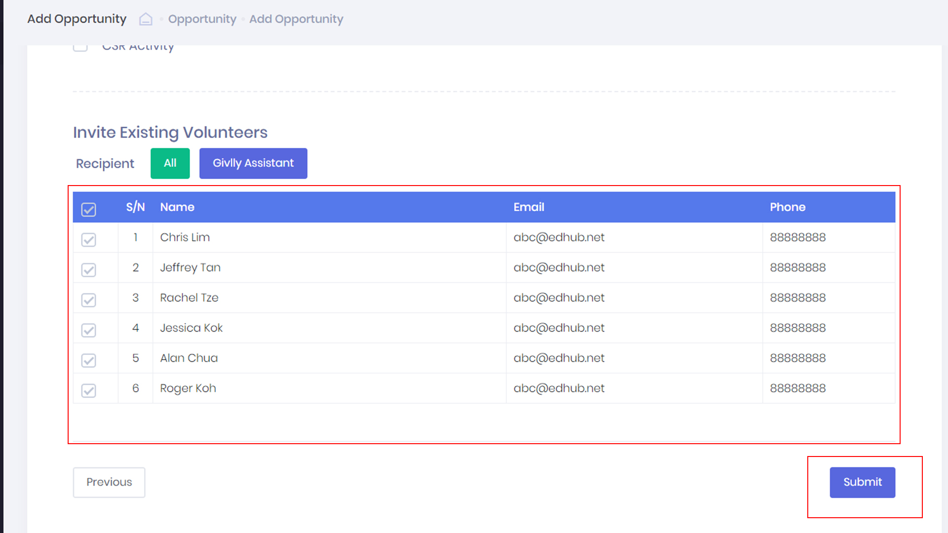 - Lastly, click the Submit button to complete the creation of the new volunteering opportunity