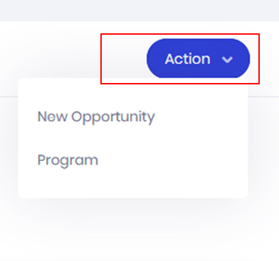 - In your Opportunity Dashboard, click on the Action Button and select New Opportunity.