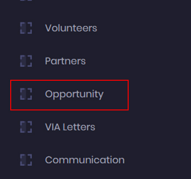 - To add a new volunteering opportunity, go to the admin dashboard, and click on the Opportunity Module.