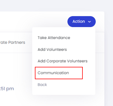 - The Opportunity Insights dashboard, click on the Action button and select Communication.