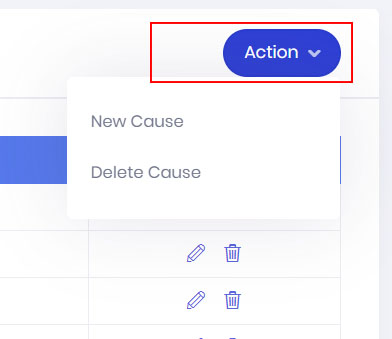 - In your Supported Causes Dashboard, click on the Action Button and select New Cause.