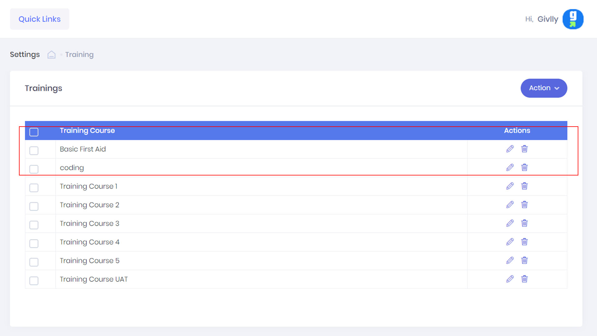 - All the required courses for the volunteers will be listed in the Training Courses Dashboard. To add more courses, just repeat the same steps as above.